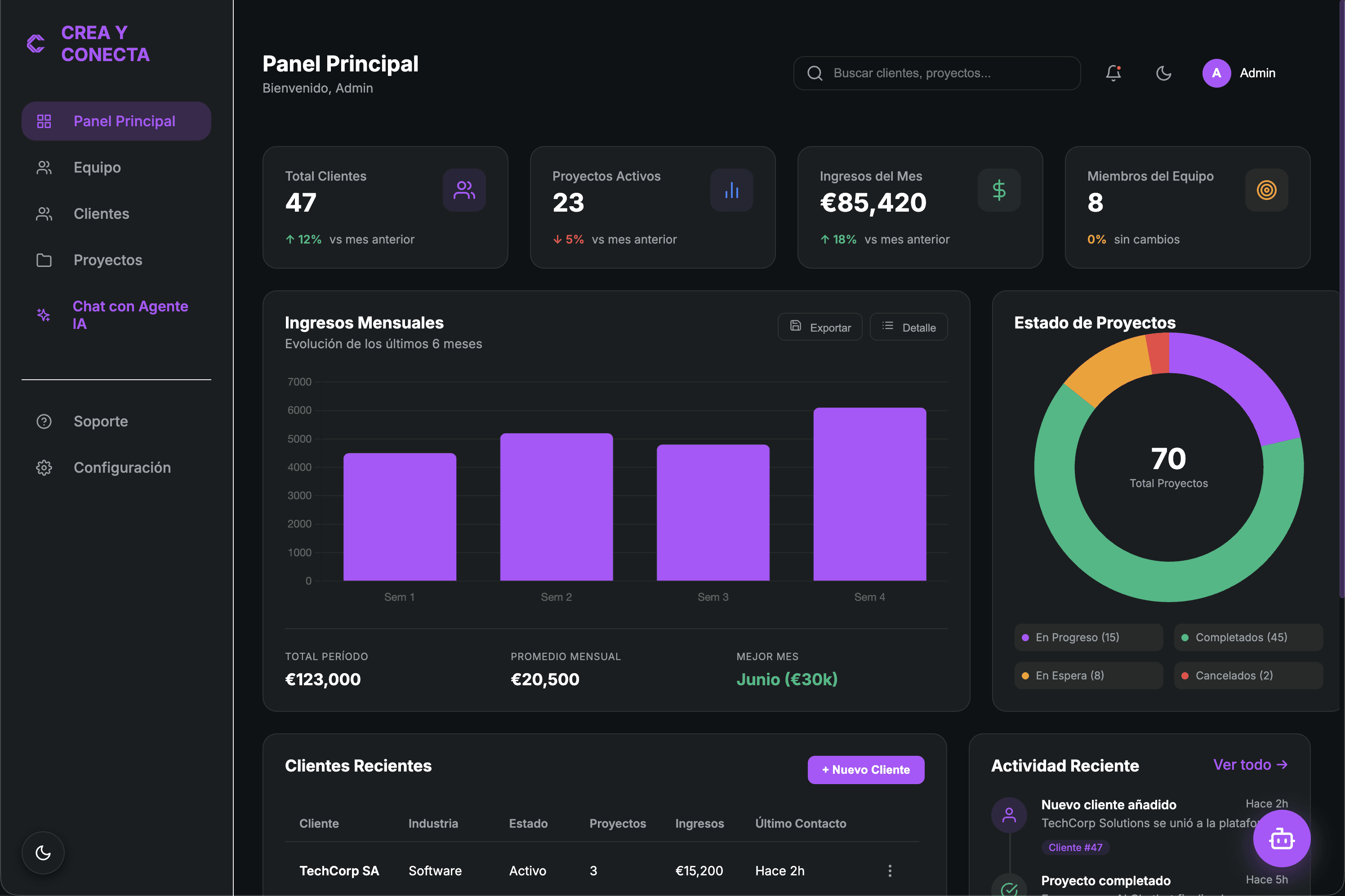 Dashboards claros por área y un sistema preparado para escalar.